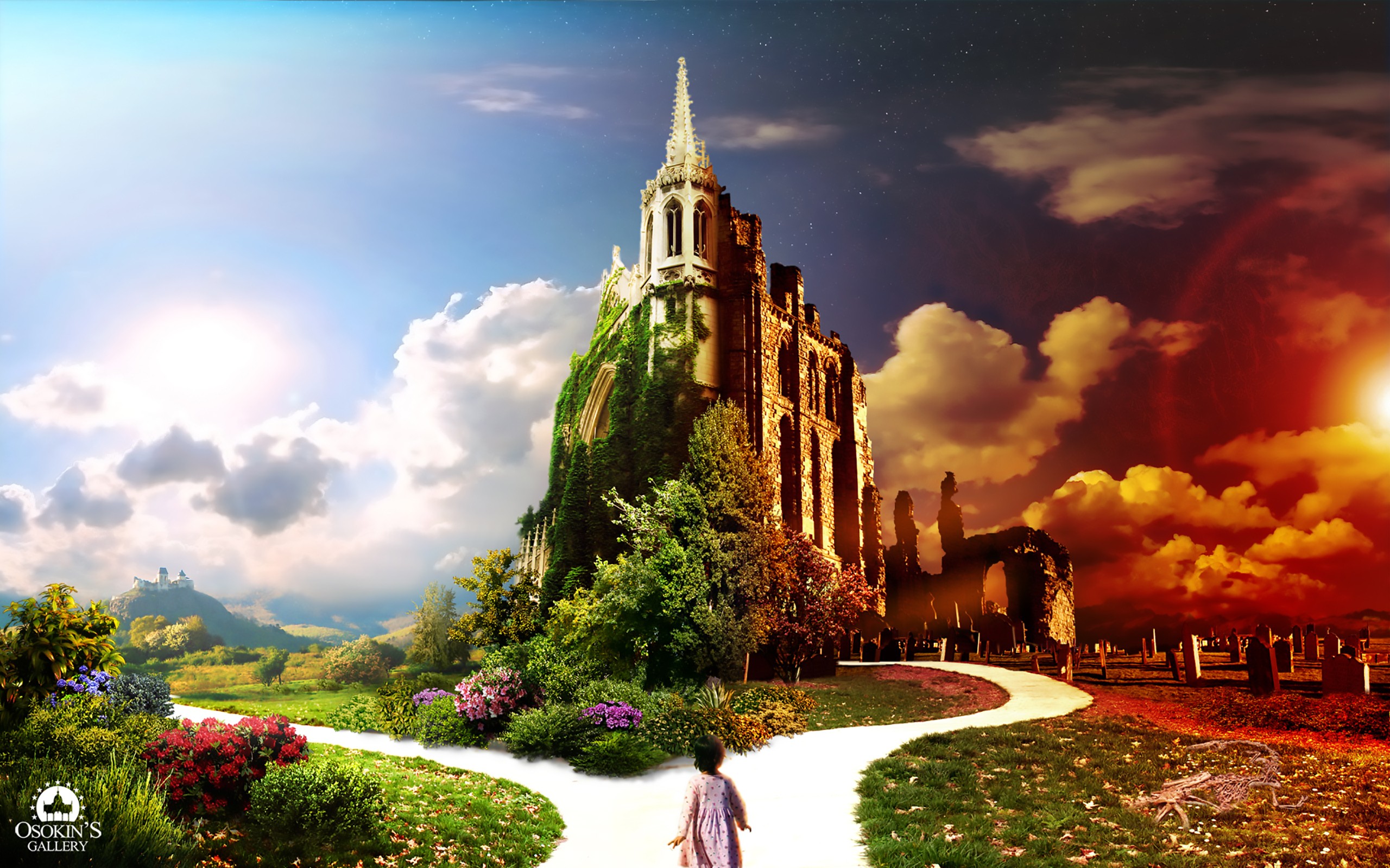 Split Road Castle Paradise Wallpaper - 2560x1600