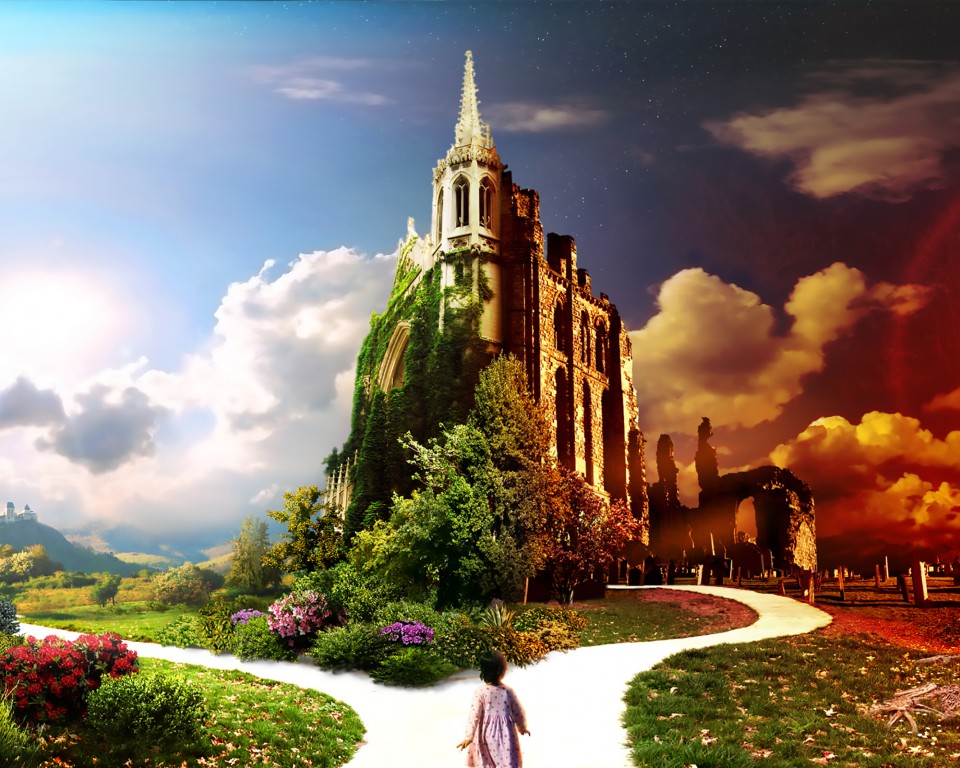 Split Road Castle Paradise Wallpaper - 960x768