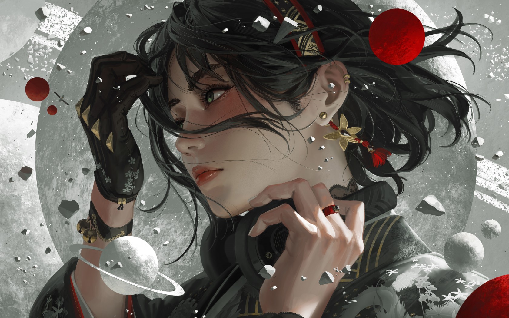 Women Black Hair Gloves Fantasy Art Wallpaper - 1680x1050