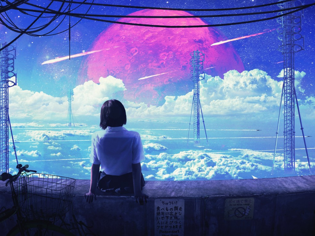 Pink Moon Girl Background Scenery Wallpaper - 1024x768