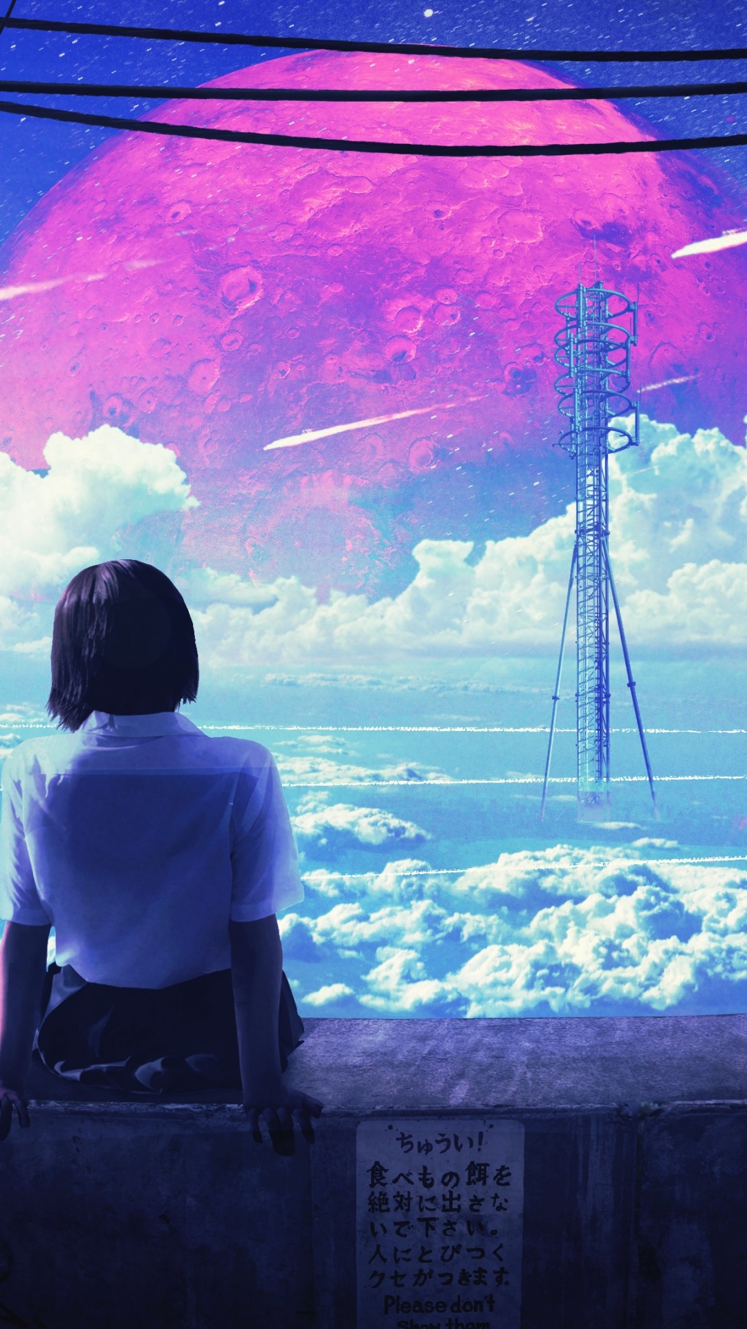 Pink Moon Girl Background Scenery Wallpaper - 1080x1920