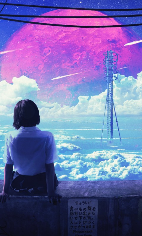 Pink Moon Girl Background Scenery Wallpaper - 480x800