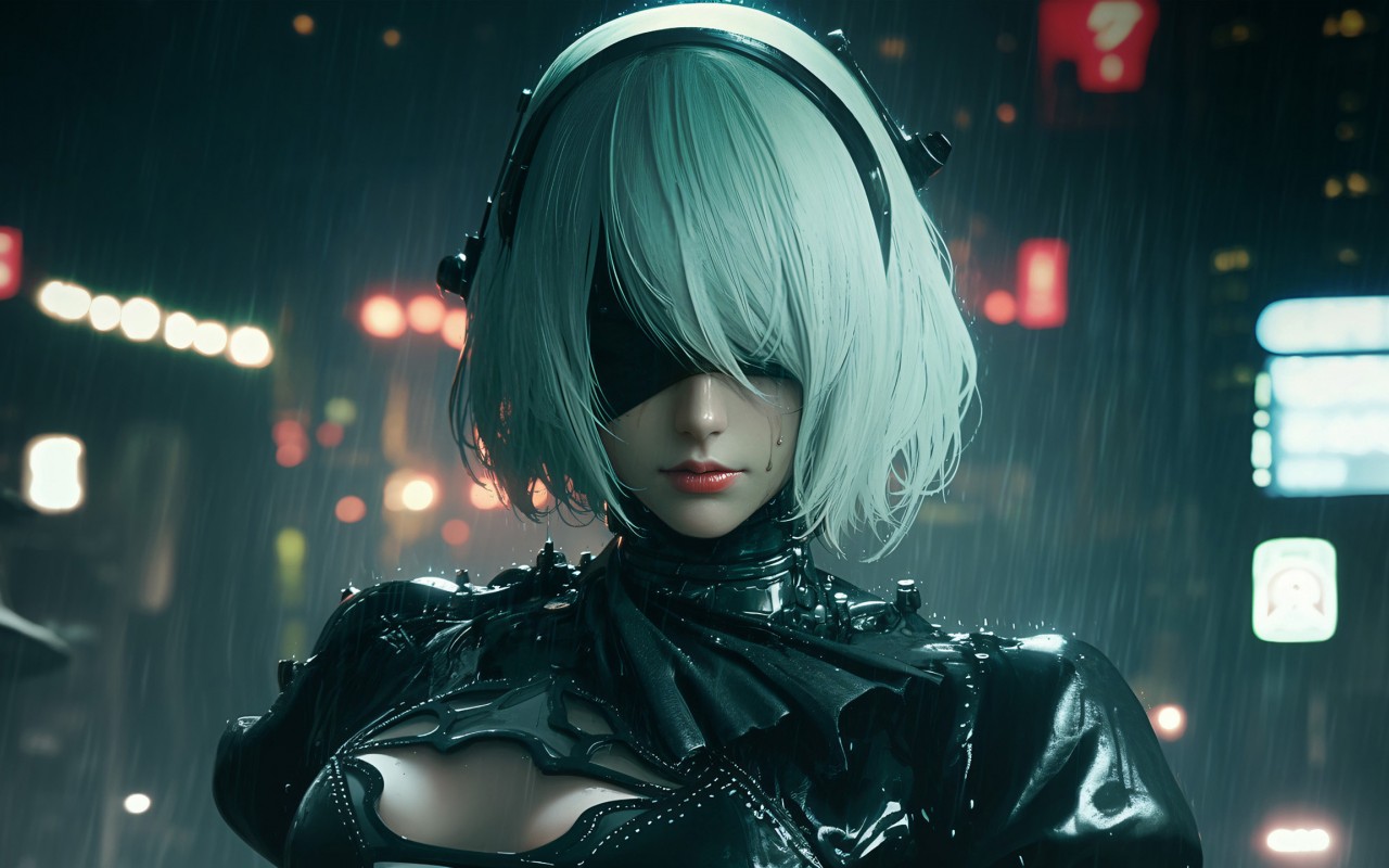 Nier Automata In Rain Game Art Wallpaper - 1280x800