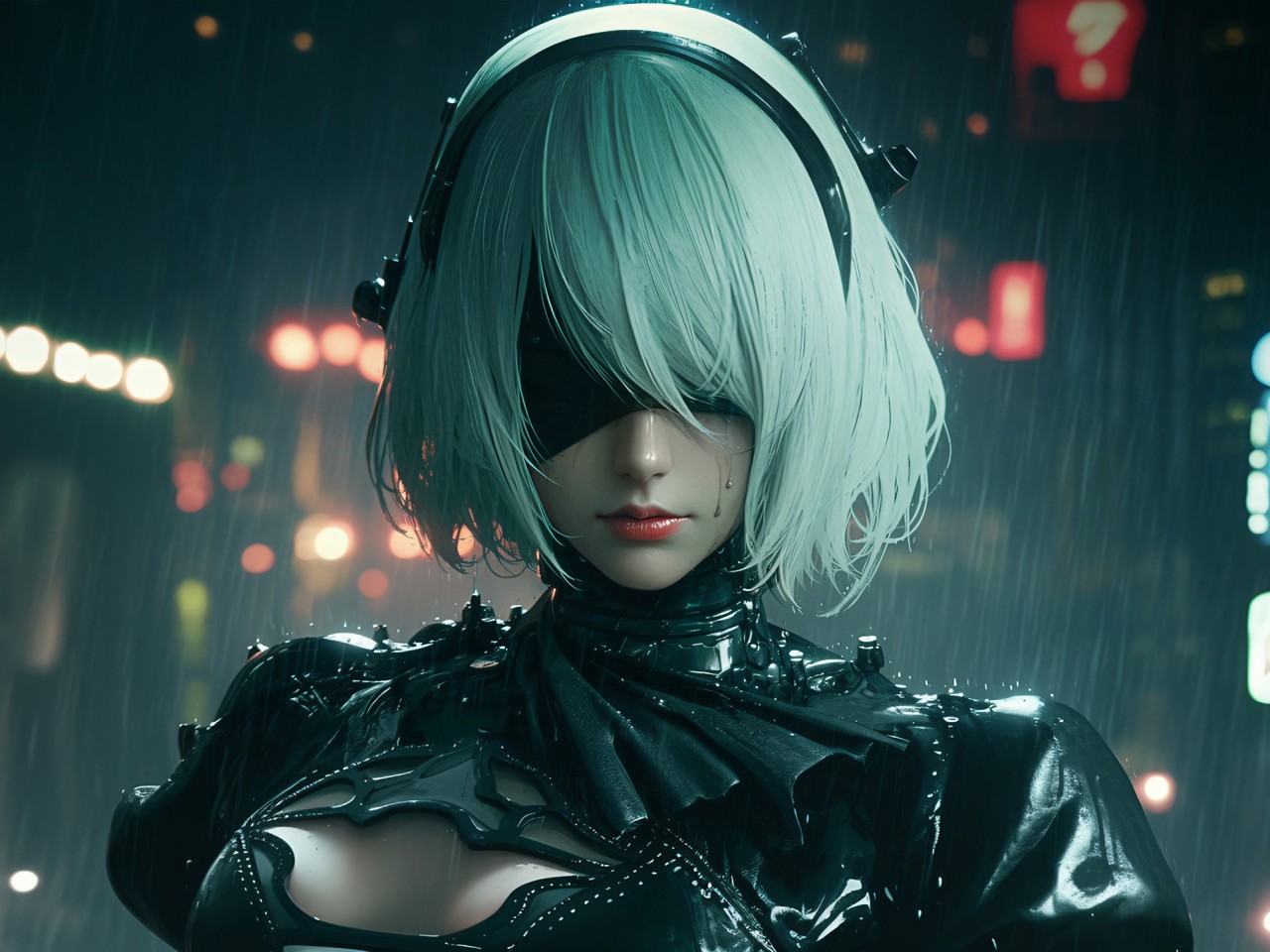 Nier Automata In Rain Game Art Wallpaper - 1280x960