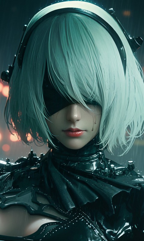 Nier Automata In Rain Game Art Wallpaper - 480x800