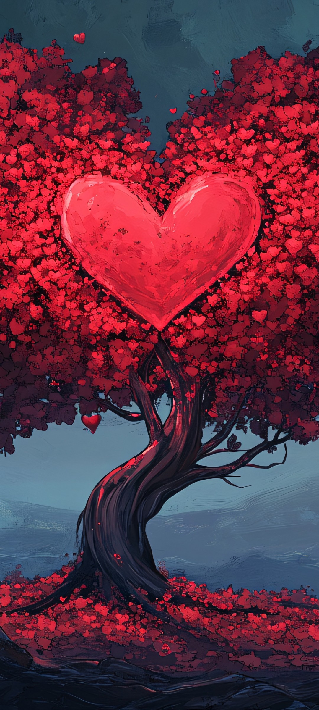 Ai Made Artistic Love Tree Wallpaper - 1080x2400