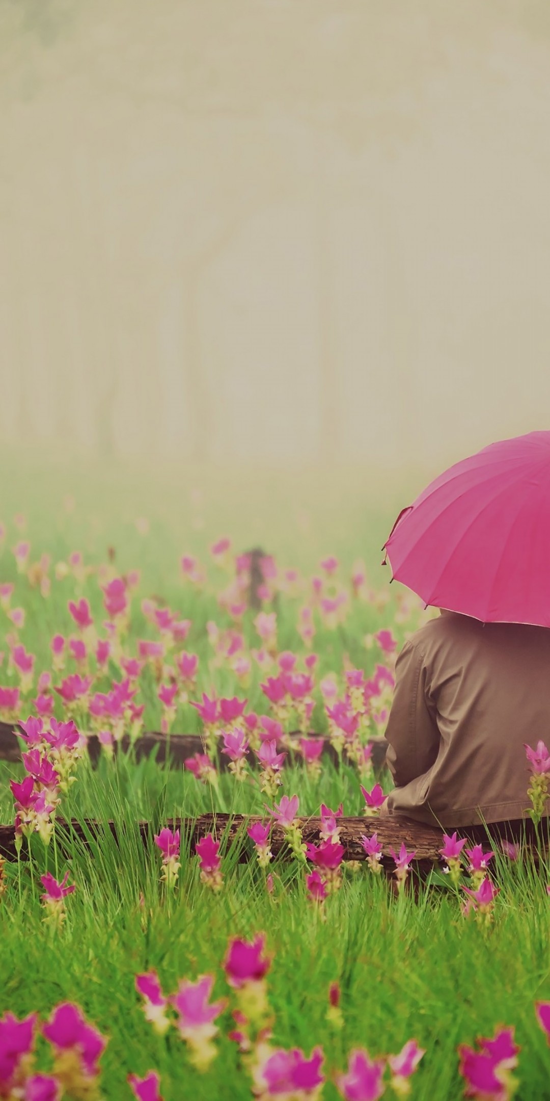 Couple Pink Umbrella Flowers Wallpaper - 1080x2160