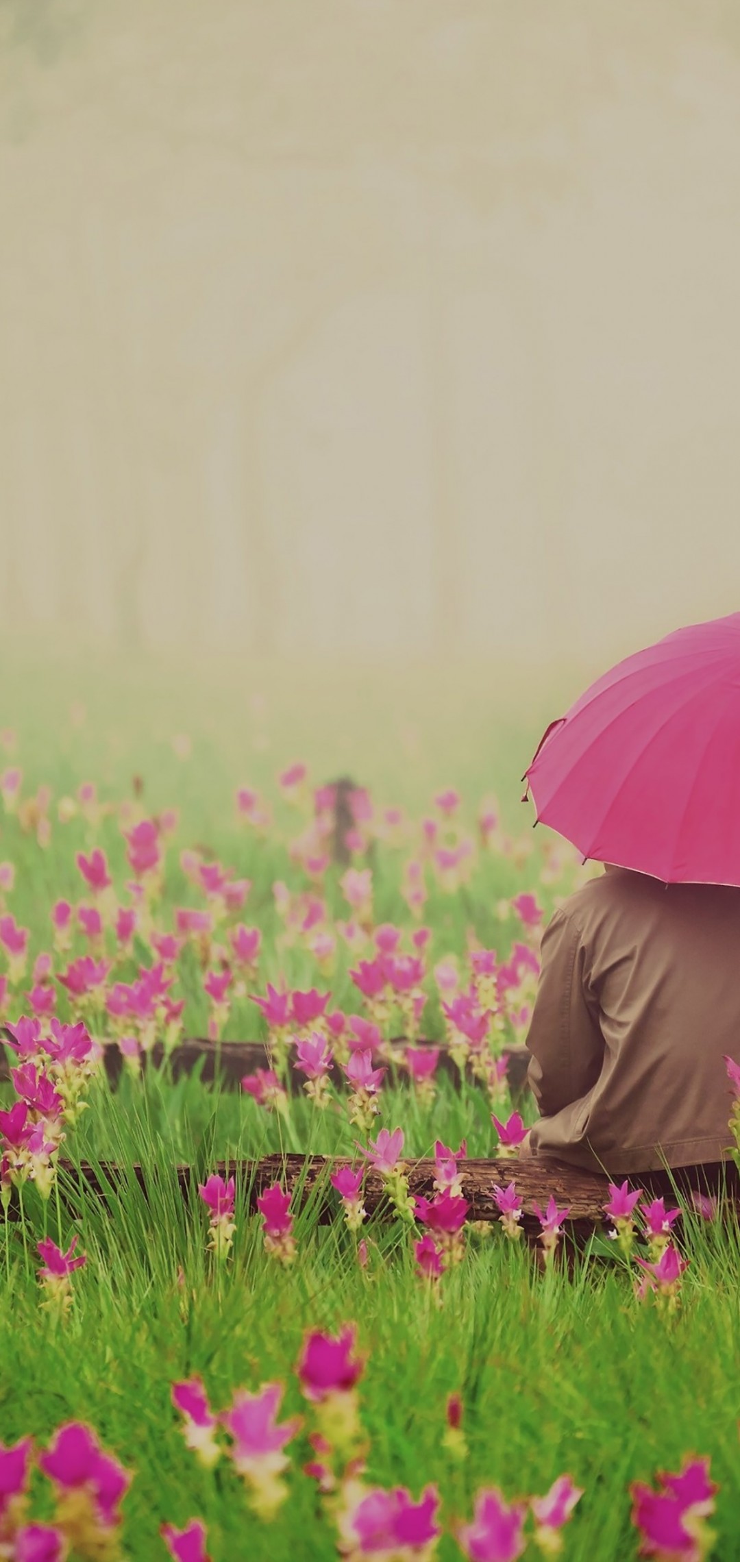 Couple Pink Umbrella Flowers Wallpaper - 1080x2280
