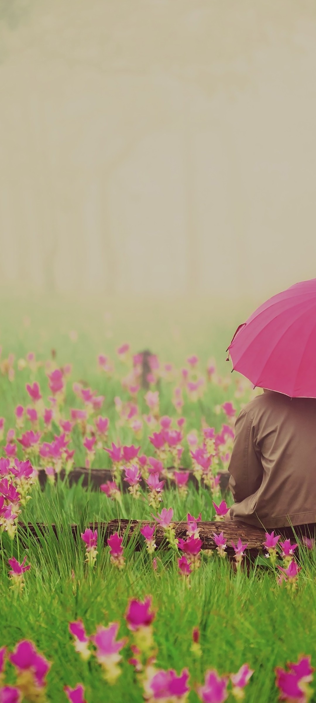 Couple Pink Umbrella Flowers Wallpaper - 1080x2400