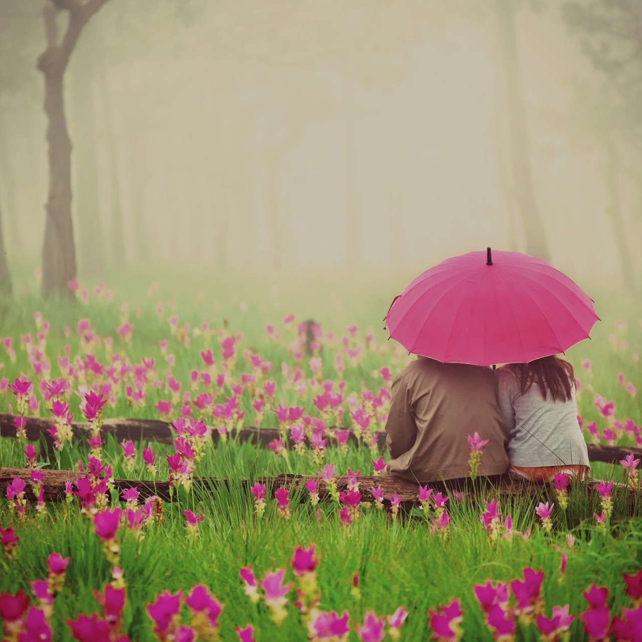 Couple Pink Umbrella Flowers Wallpaper - 1280x1280