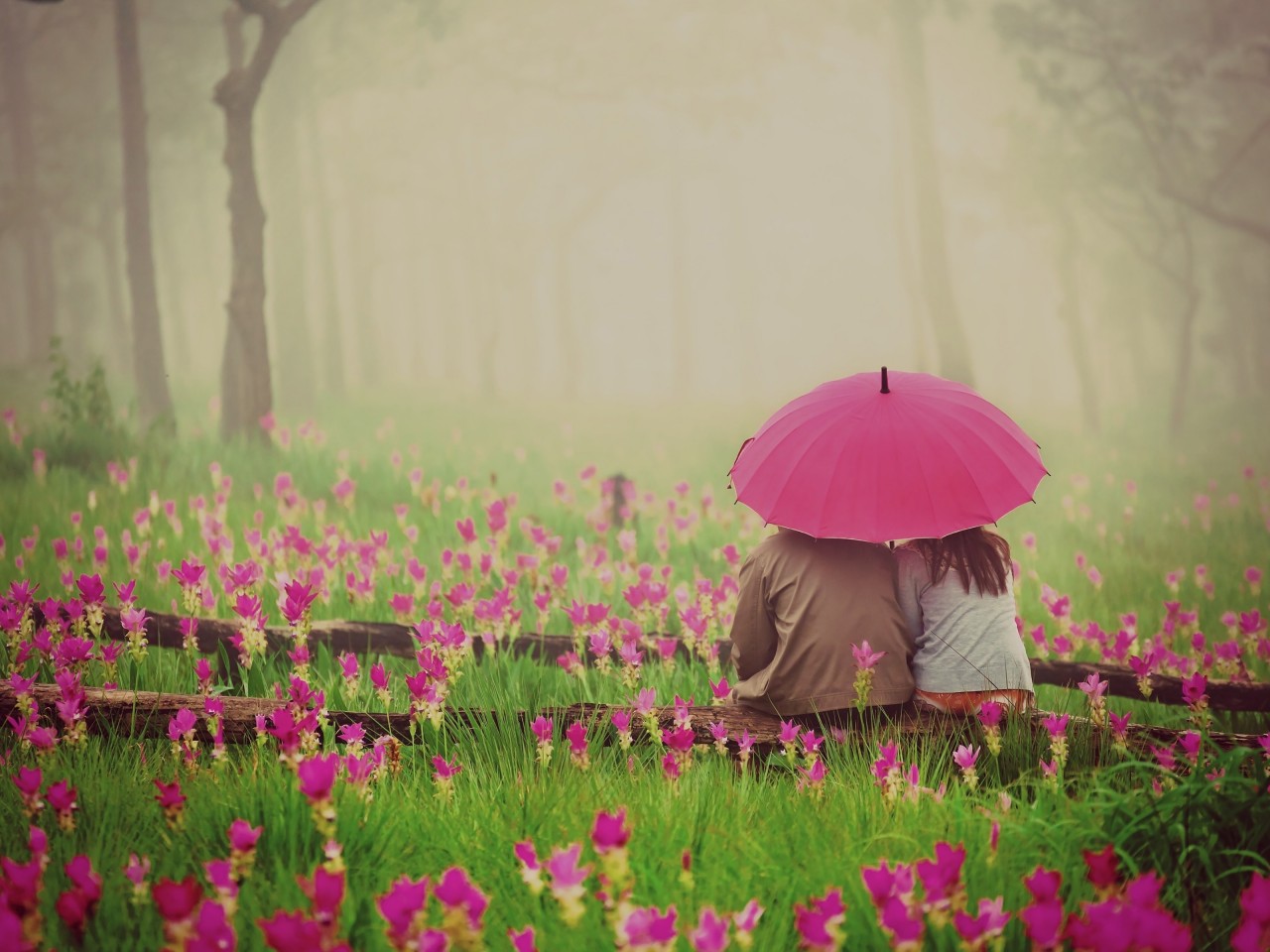 Couple Pink Umbrella Flowers Wallpaper - 1280x960