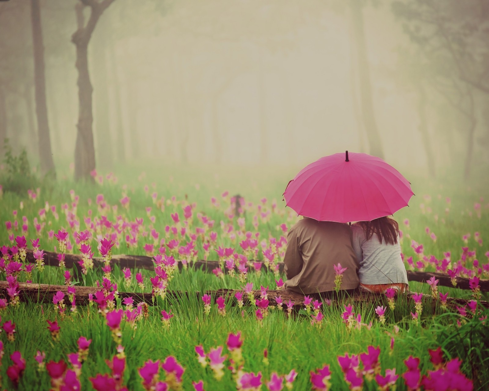 Couple Pink Umbrella Flowers Wallpaper - 1600x1280