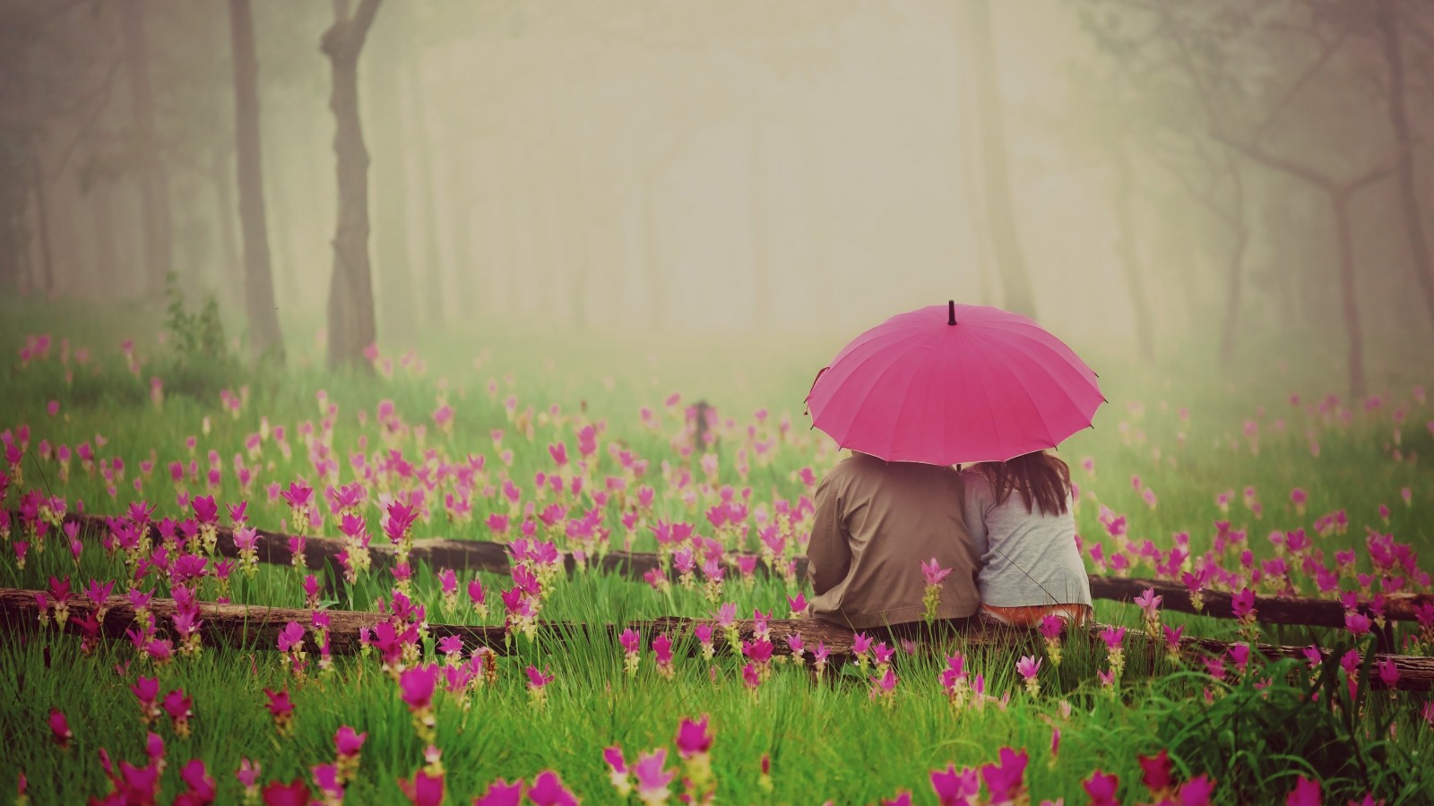 Couple Pink Umbrella Flowers Wallpaper - 1600x900
