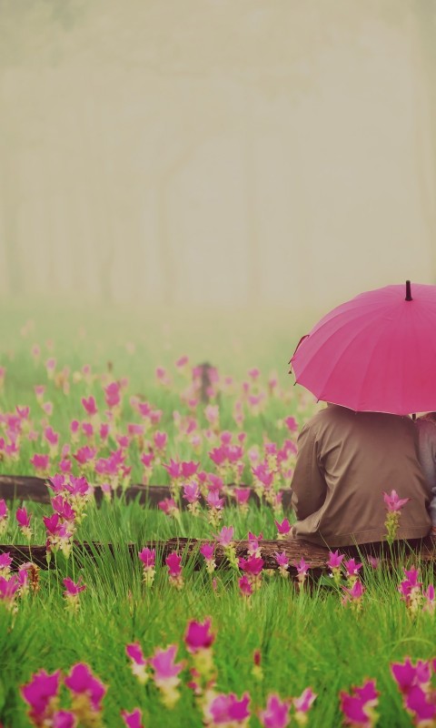 Couple Pink Umbrella Flowers Wallpaper - 480x800
