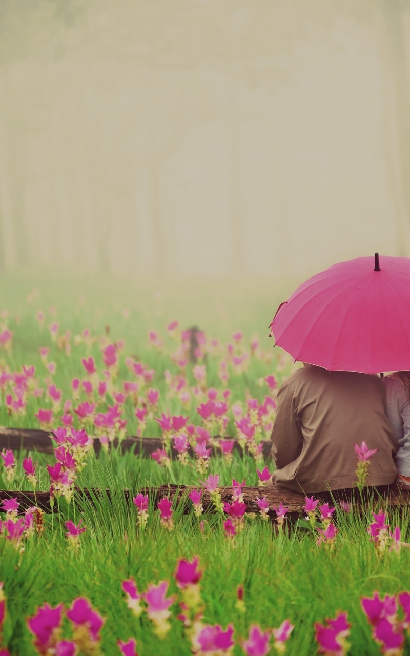 Couple Pink Umbrella Flowers Wallpaper - 800x1280