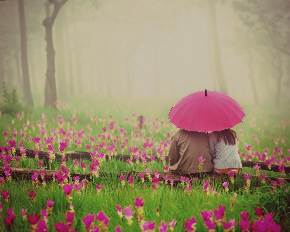 Couple Pink Umbrella Flowers Wallpaper - 960x768