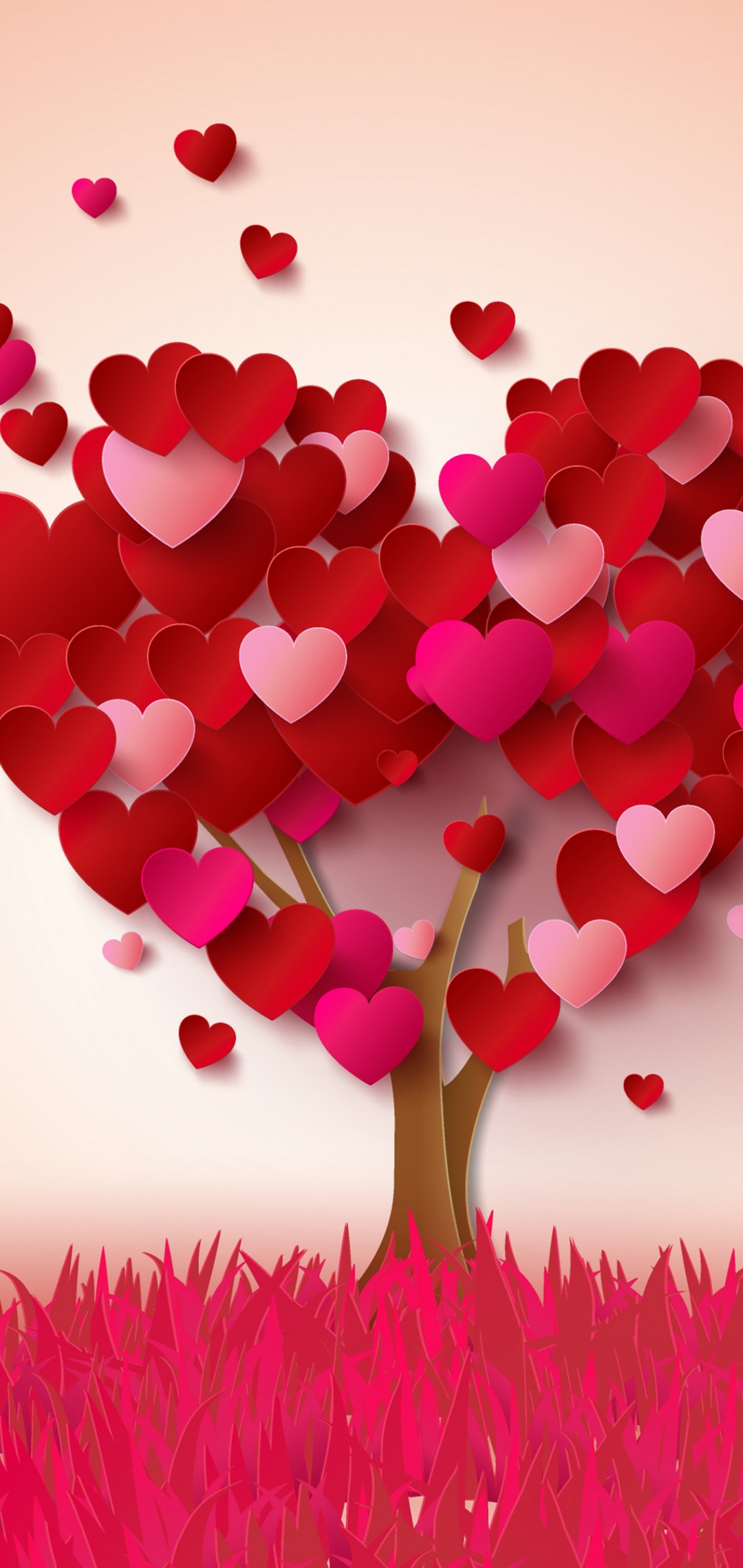 Heart Pink Tree Illustration Wallpaper - 1080x2280