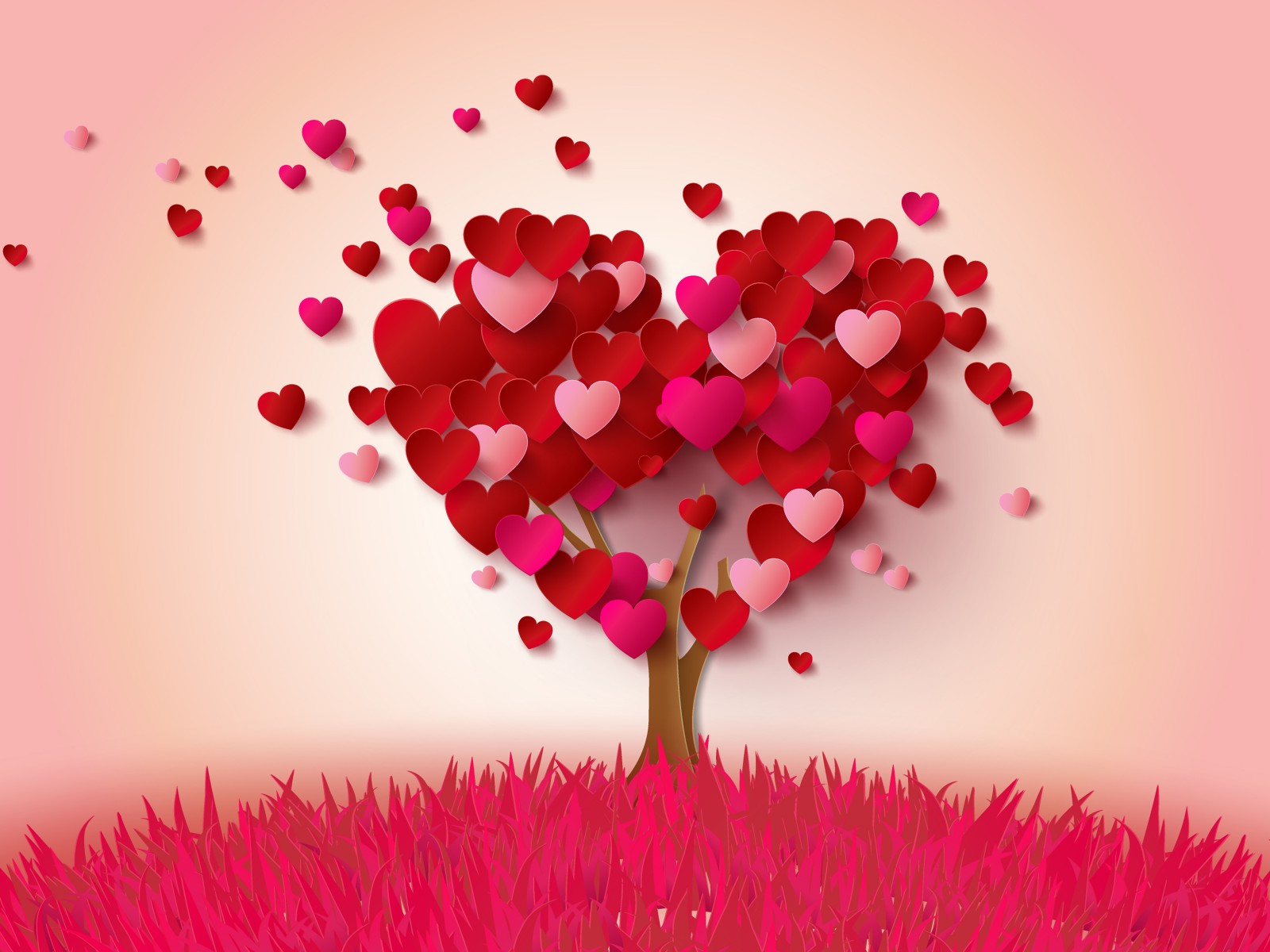 Heart Pink Tree Illustration Wallpaper - 1600x1200