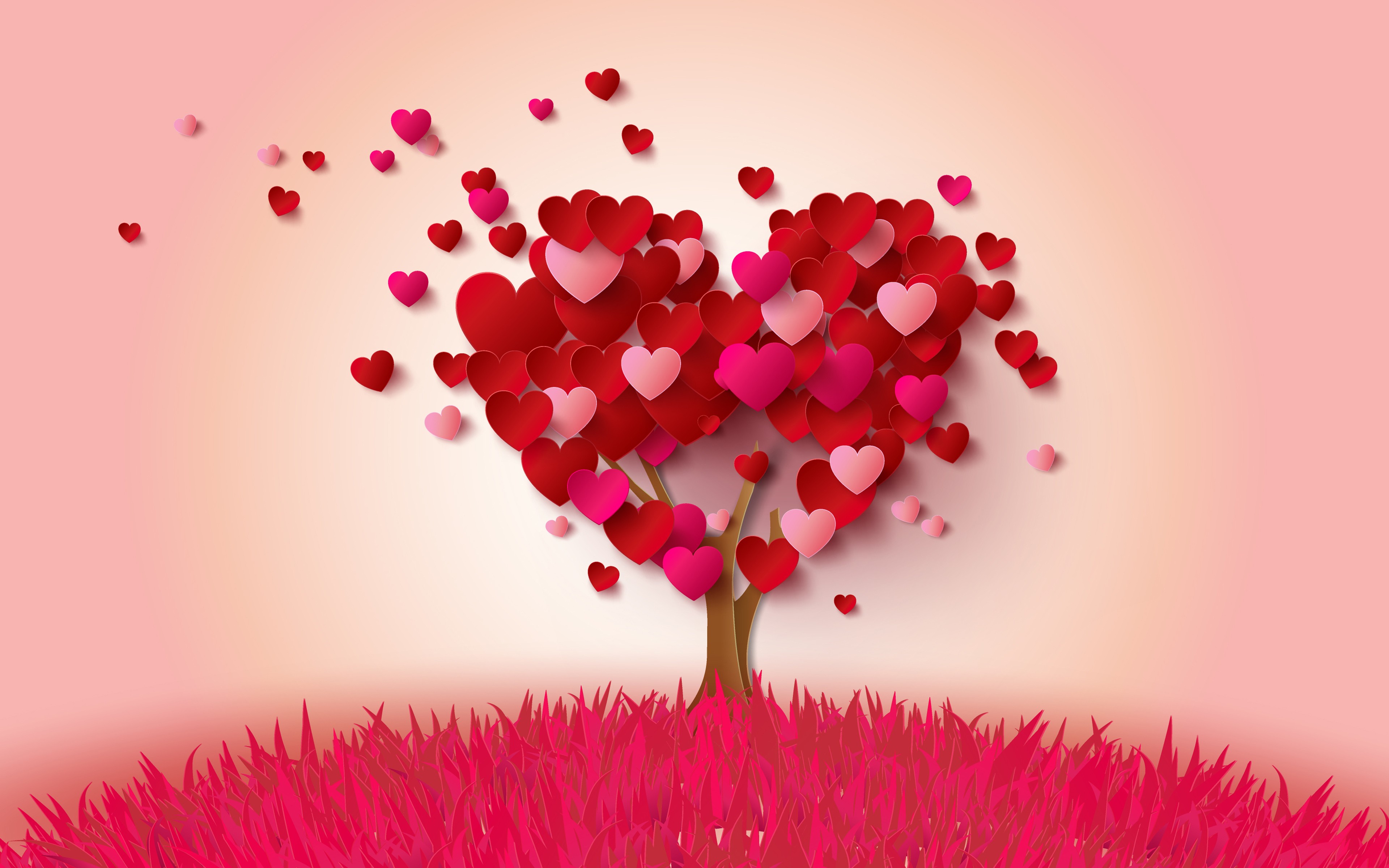 Heart Pink Tree Illustration Wallpaper - 3840x2400