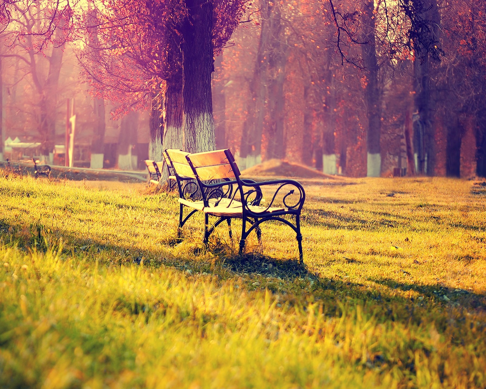 Autumn Park Bench Sunlight Wallpaper - 1600x1280