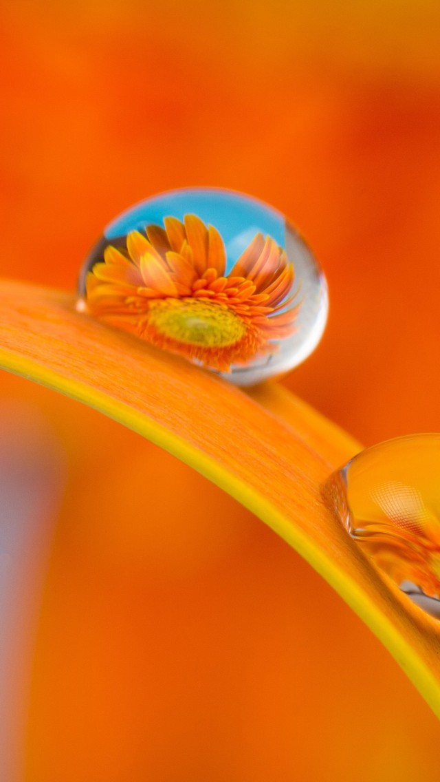 Orange Daisy Plant Macro Water Wallpaper - 640x1136