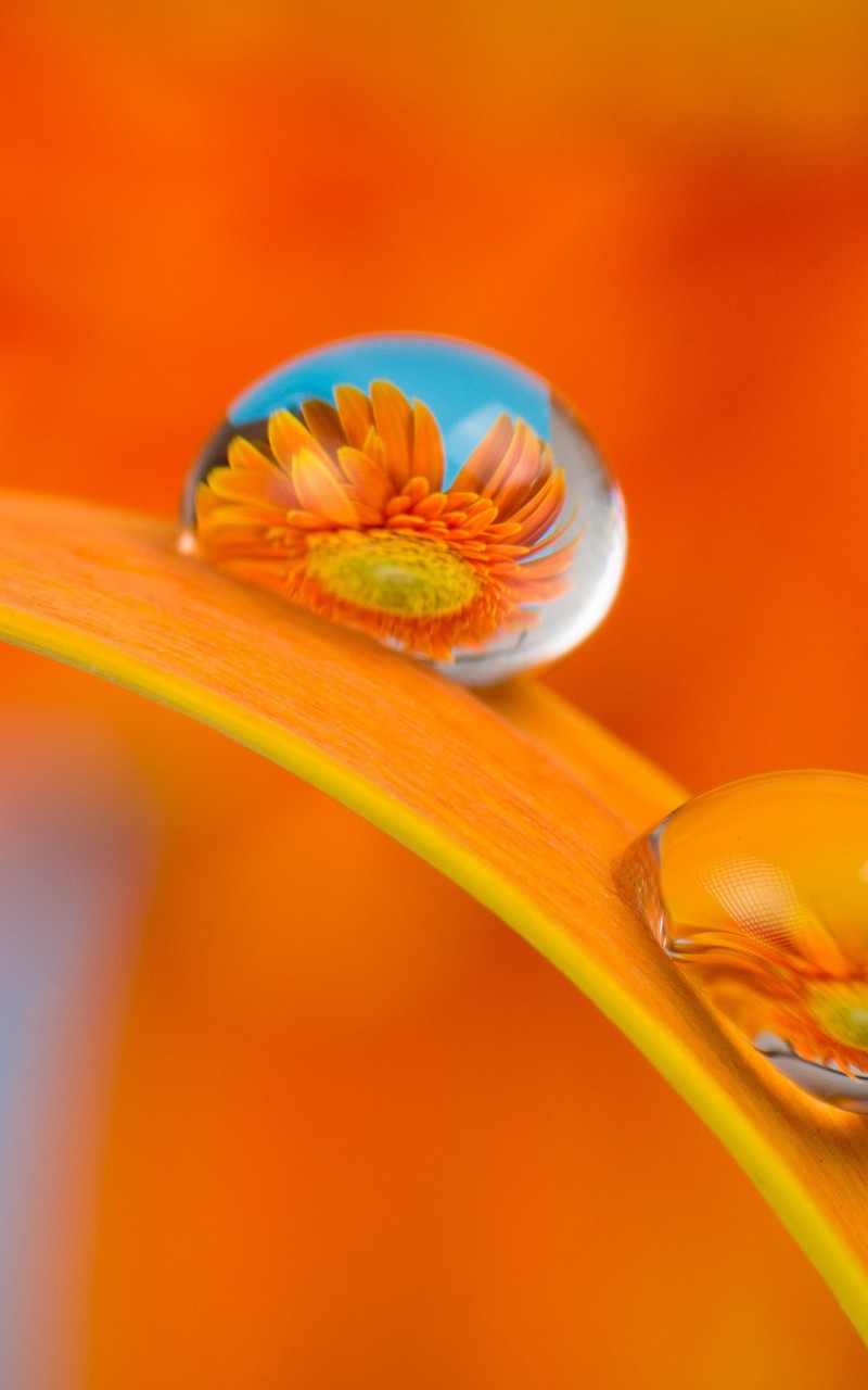 Orange Daisy Plant Macro Water Wallpaper - 800x1280