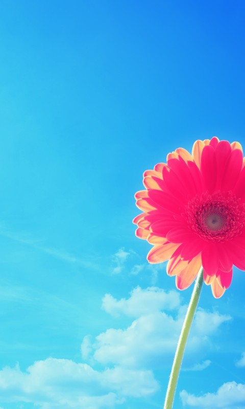 Pink Gerbera Blue Sky Wallpaper - 480x800