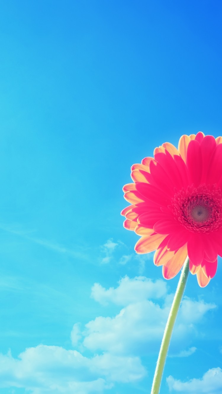 Pink Gerbera Blue Sky Wallpaper - 750x1334