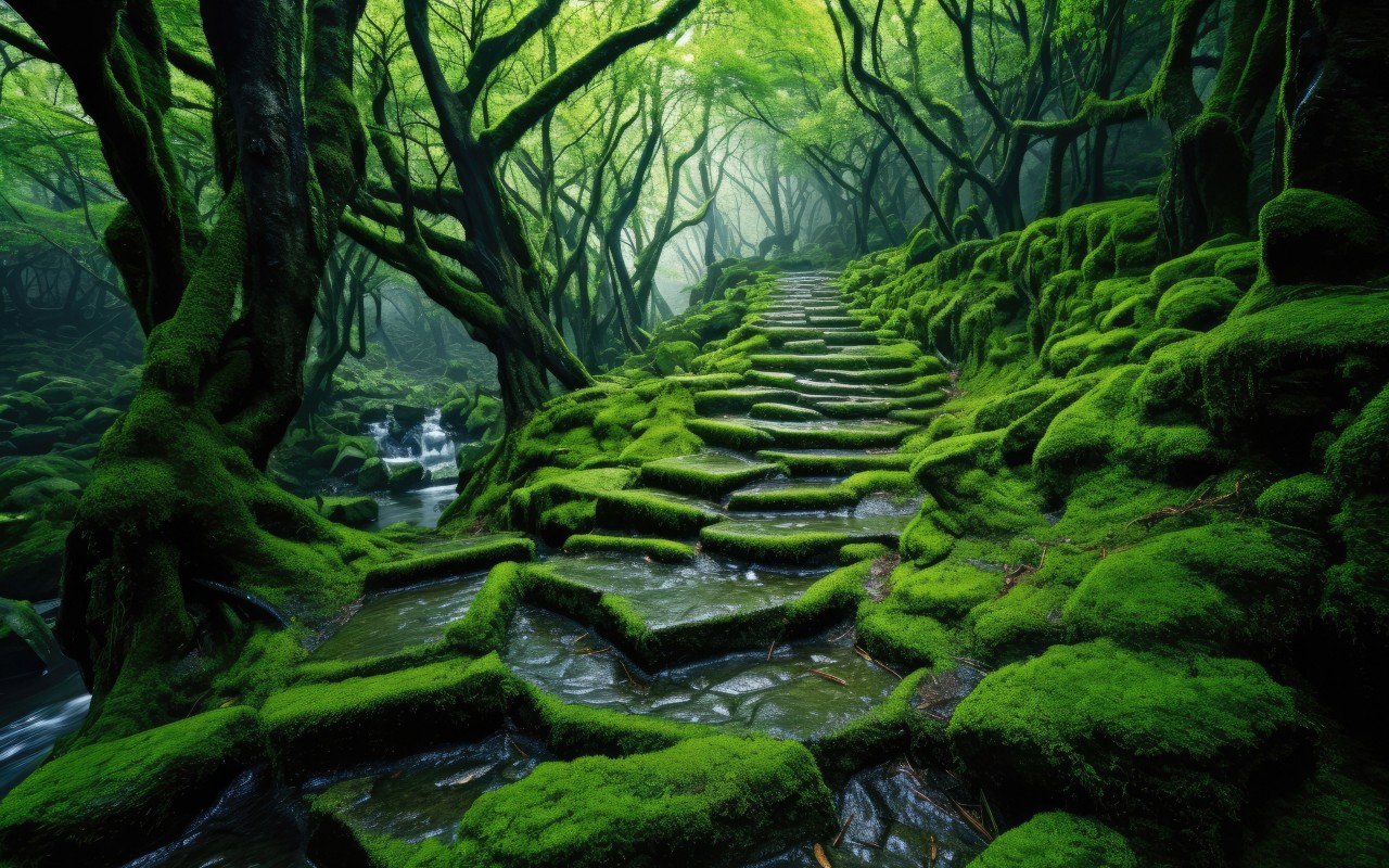 Beautiful Green Thick Forest Path Wallpaper - 1280x800