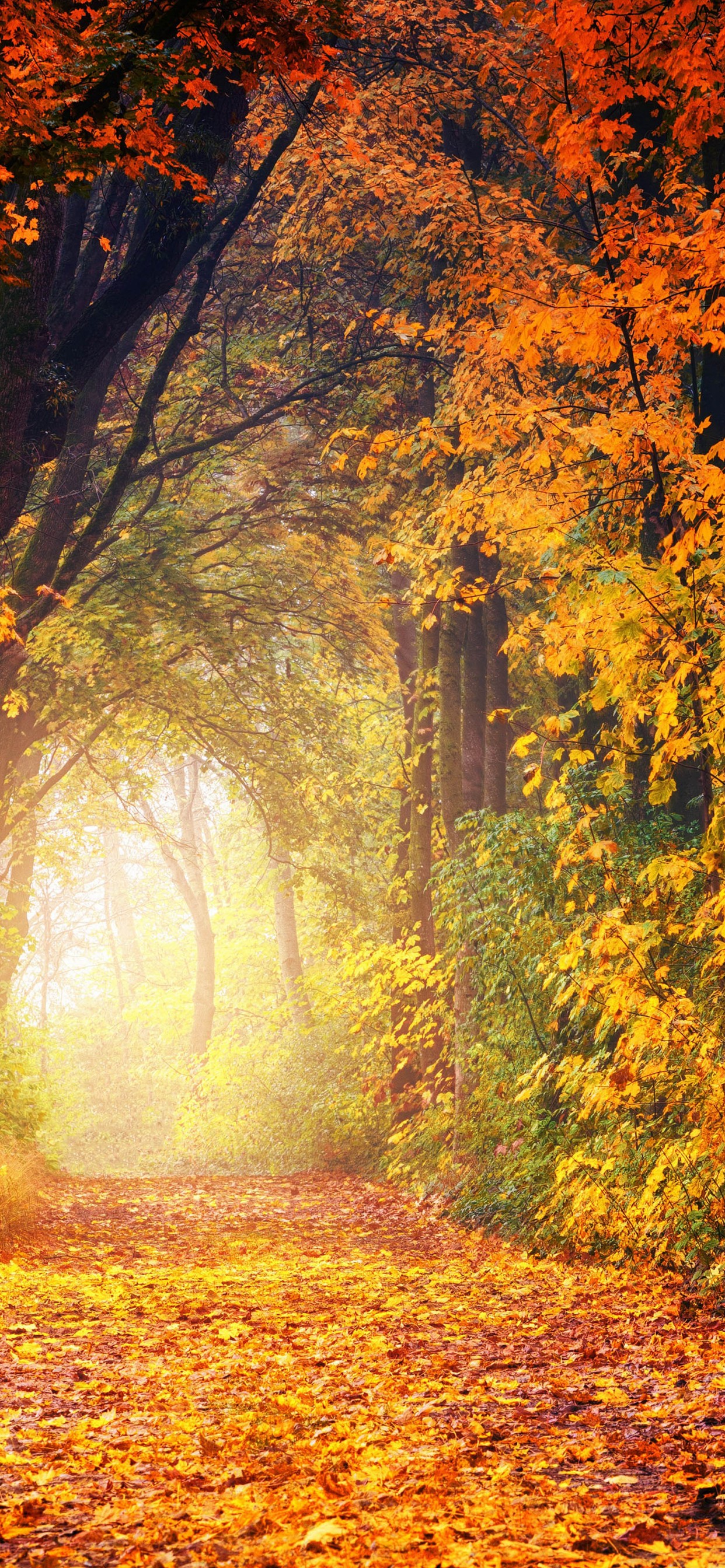 Forest Path Orange Autumn Leaves Wallpaper - 1242x2688