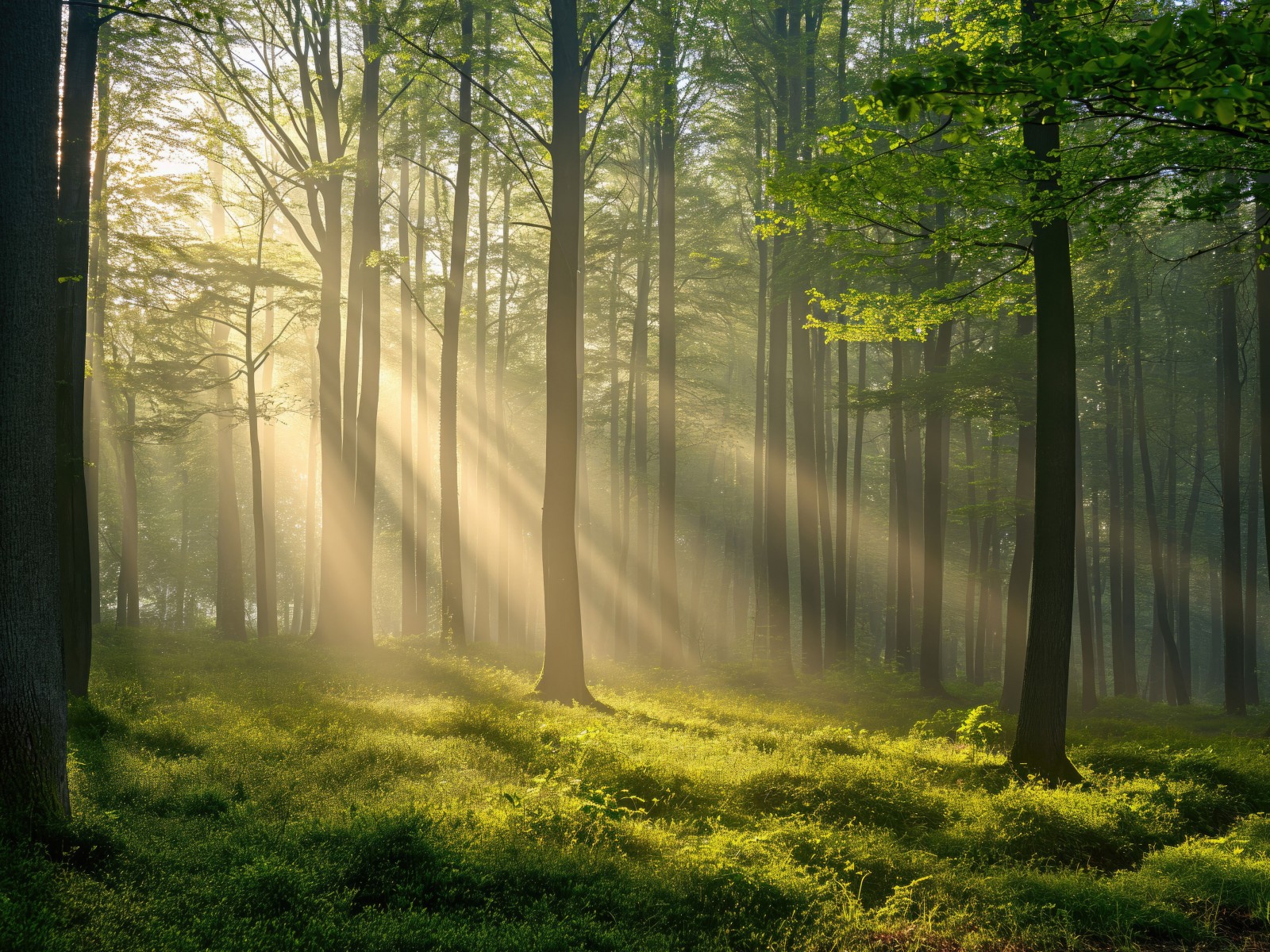 Green Dense Forest Sun Rays Wallpaper - 1600x1200