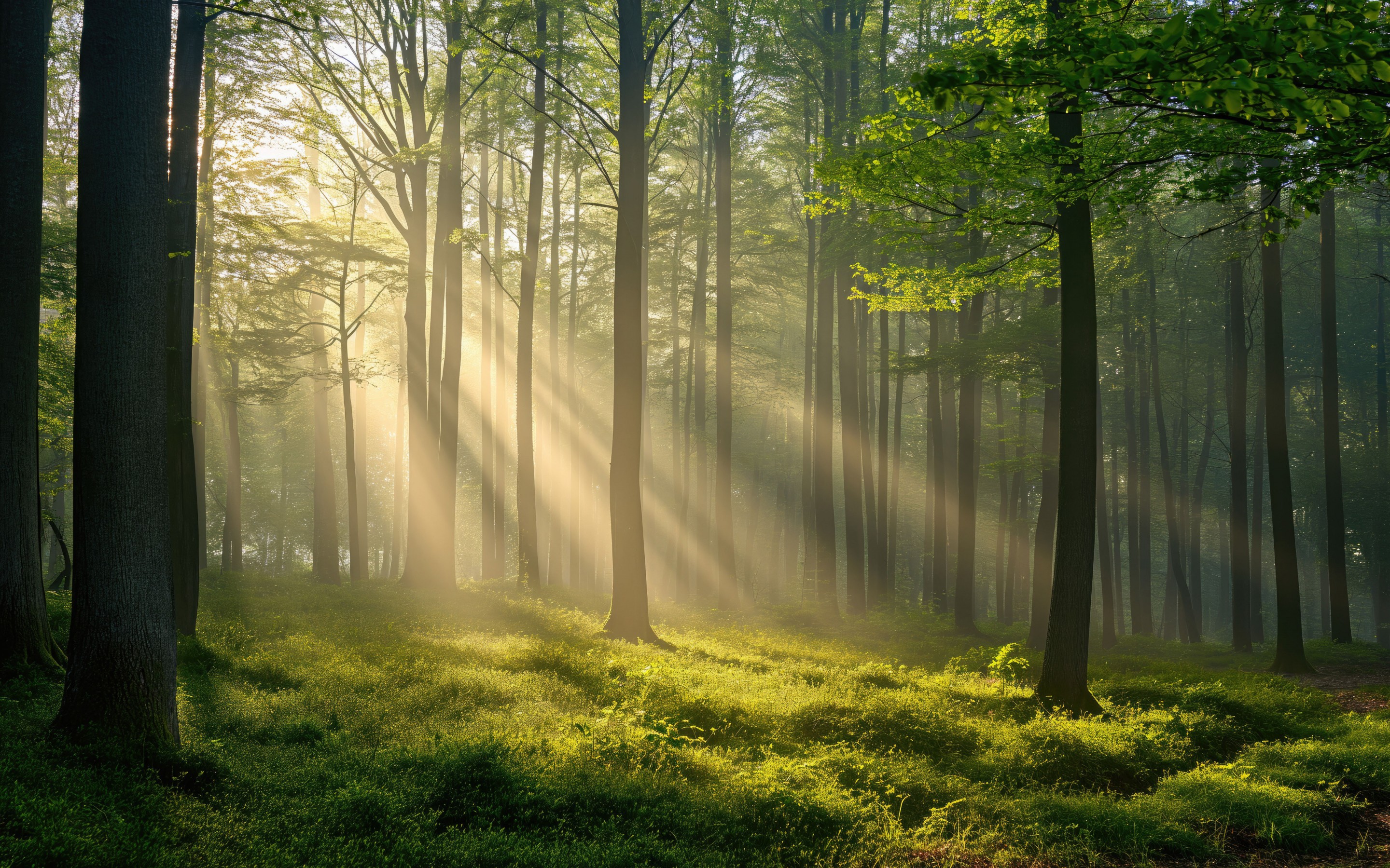 Green Dense Forest Sun Rays Wallpaper - 2880x1800