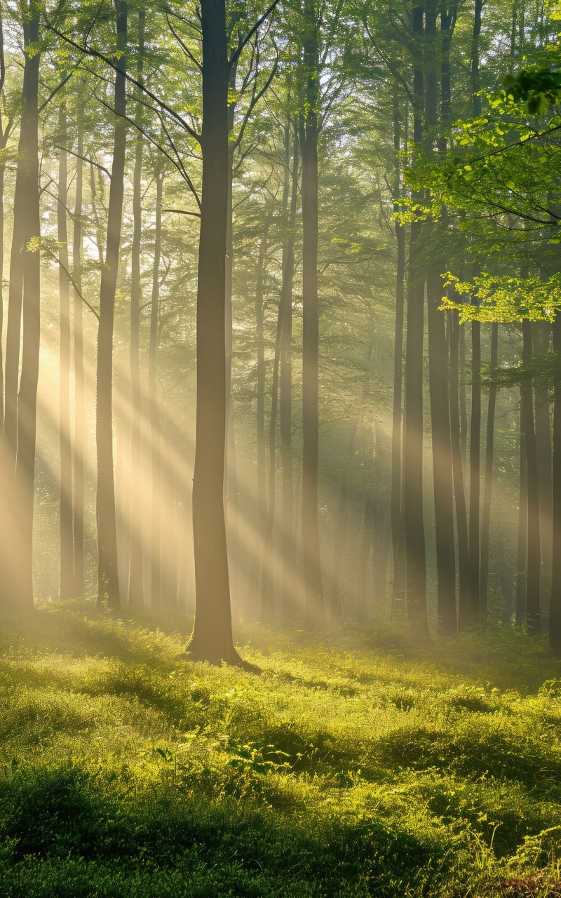 Green Dense Forest Sun Rays Wallpaper - 800x1280