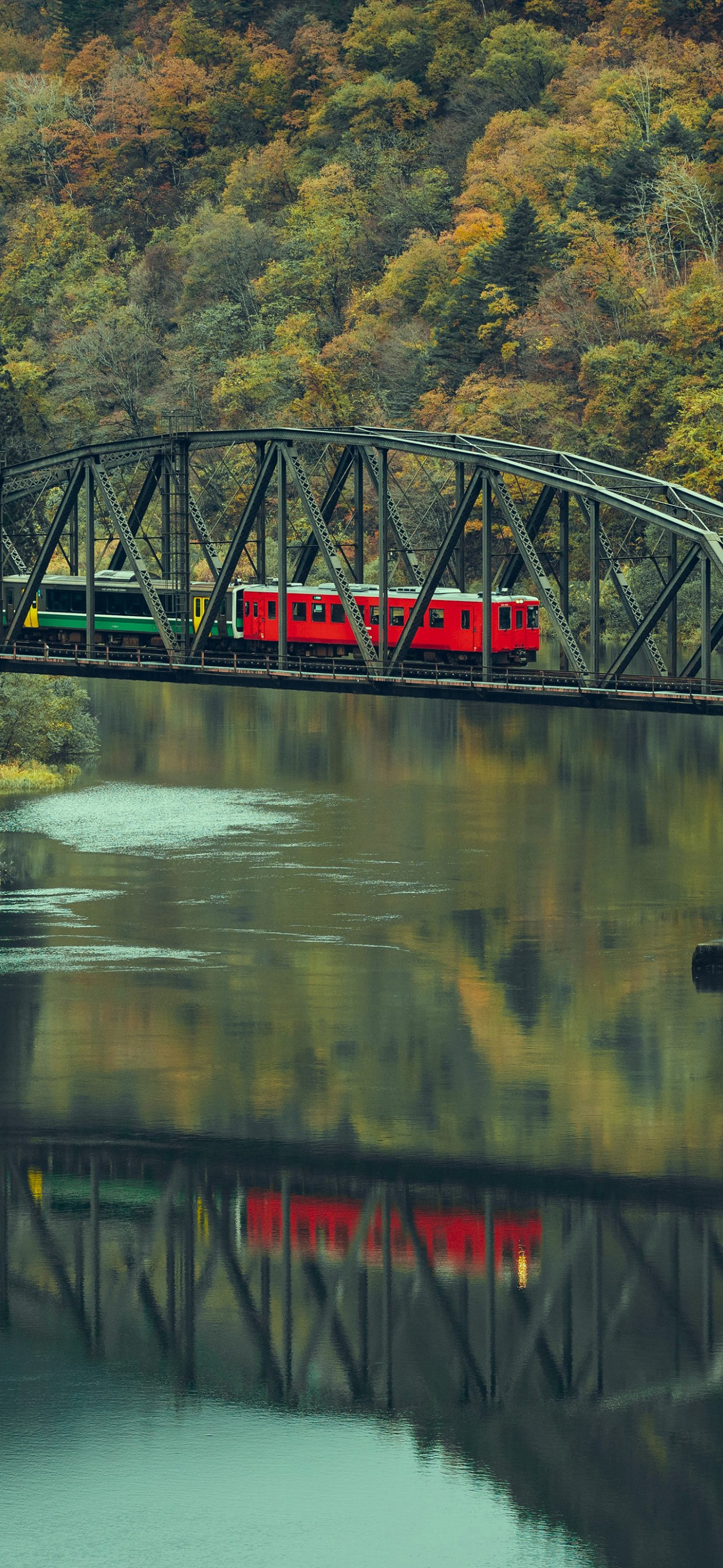Japan Tadami River Forest Train Wallpaper - 1290x2796