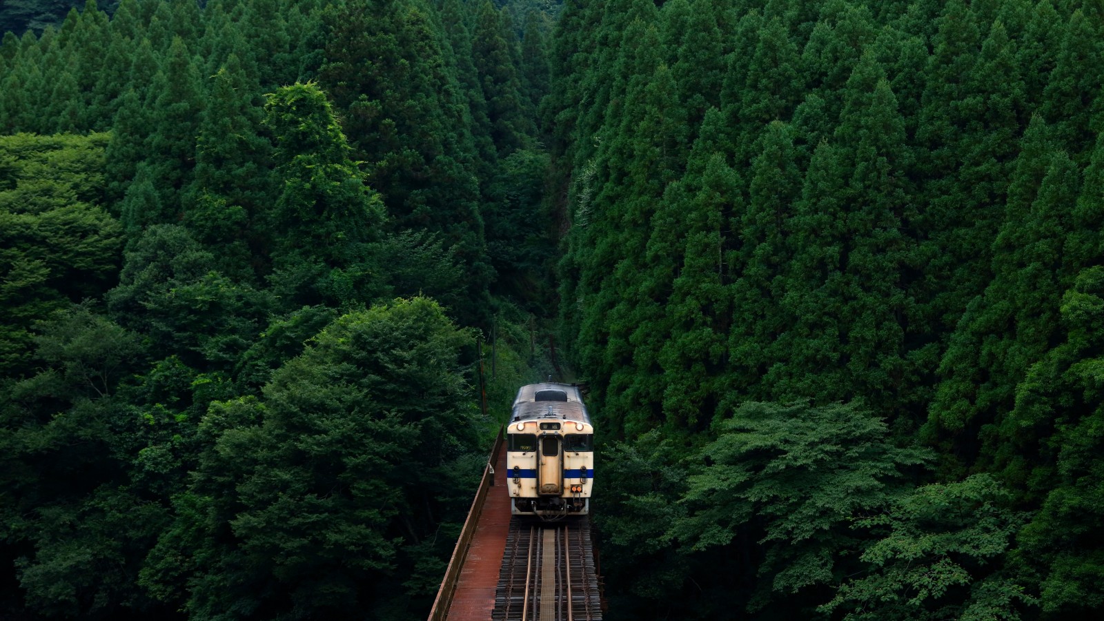 Japan Train Rail Bridge Dense Forest Wallpaper - 1600x900