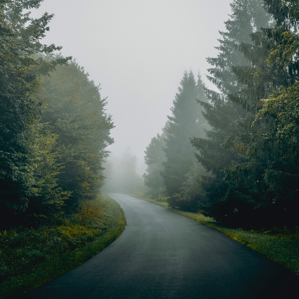 Nature Trees Forest Mist Asphalt Wallpaper - 1024x1024