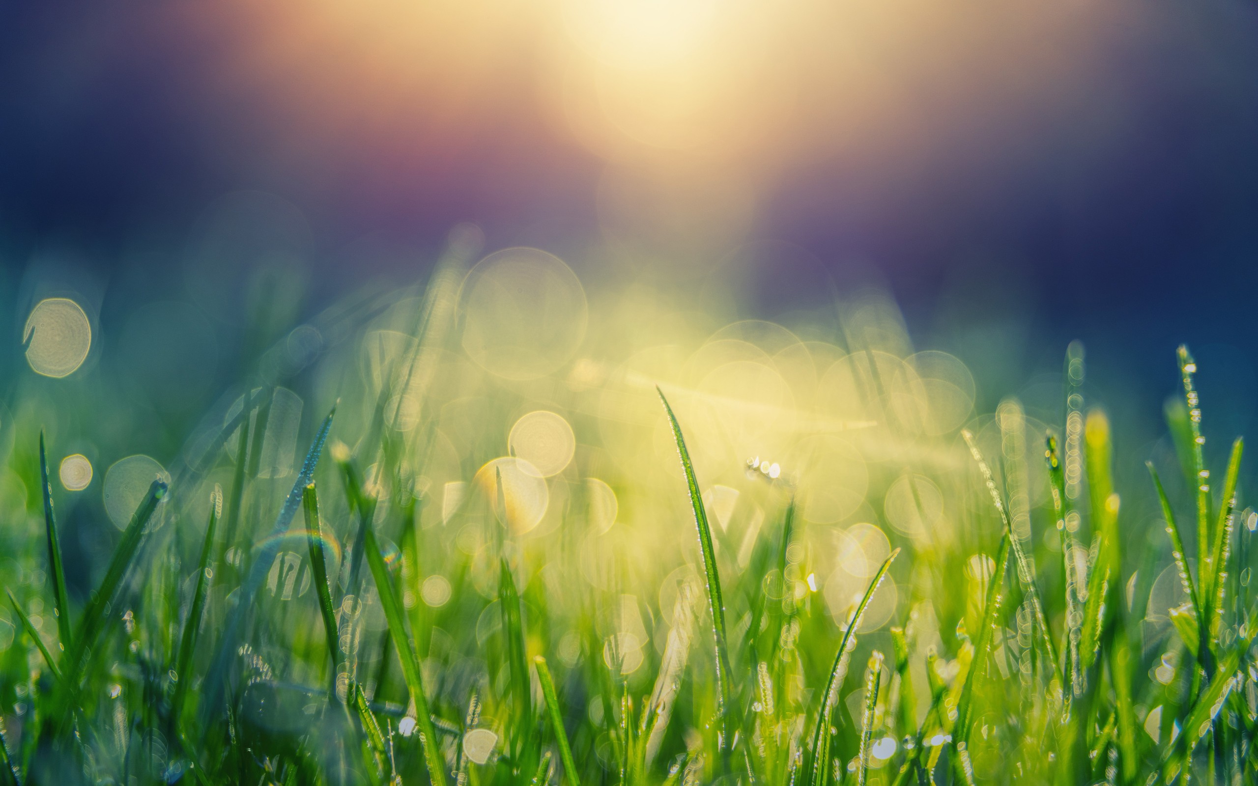 Green Grass Macro Water Drops Wallpaper - 2560x1600