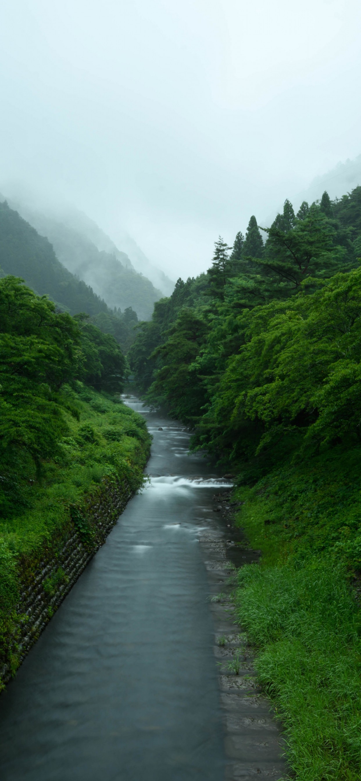 Japan Nature Forest Mountains Mist Wallpaper - 1242x2688
