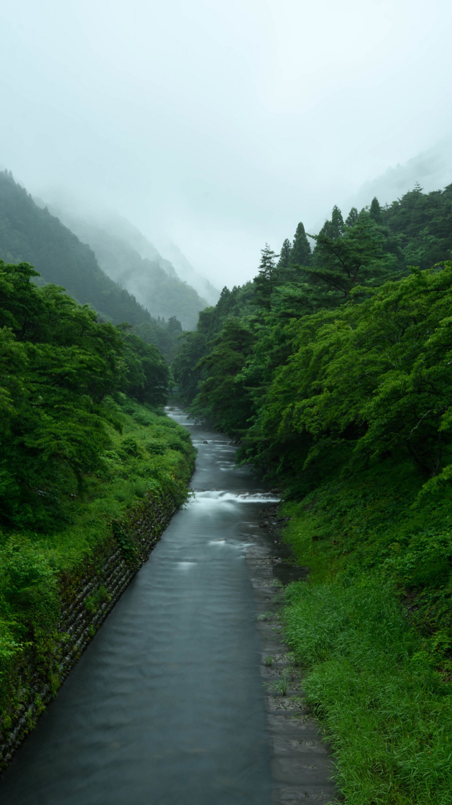 Japan Nature Forest Mountains Mist Wallpaper - 1440x2560