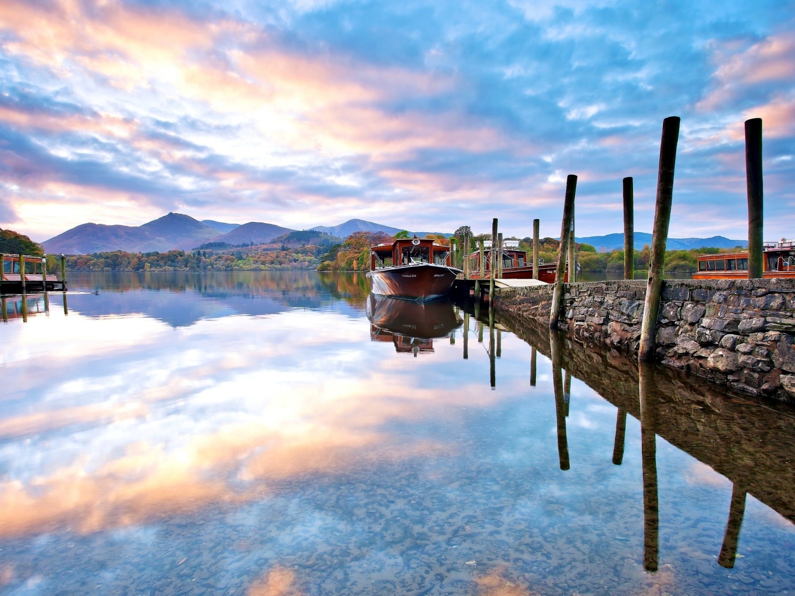 Lake Boat Dock Sky Reflection Wallpaper - 1600x1200