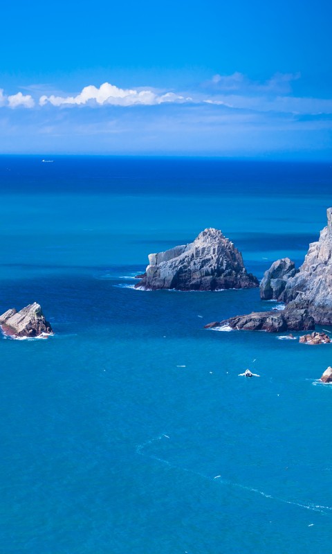 Blue Sea Rocky Mountains Boat Wallpaper - 480x800
