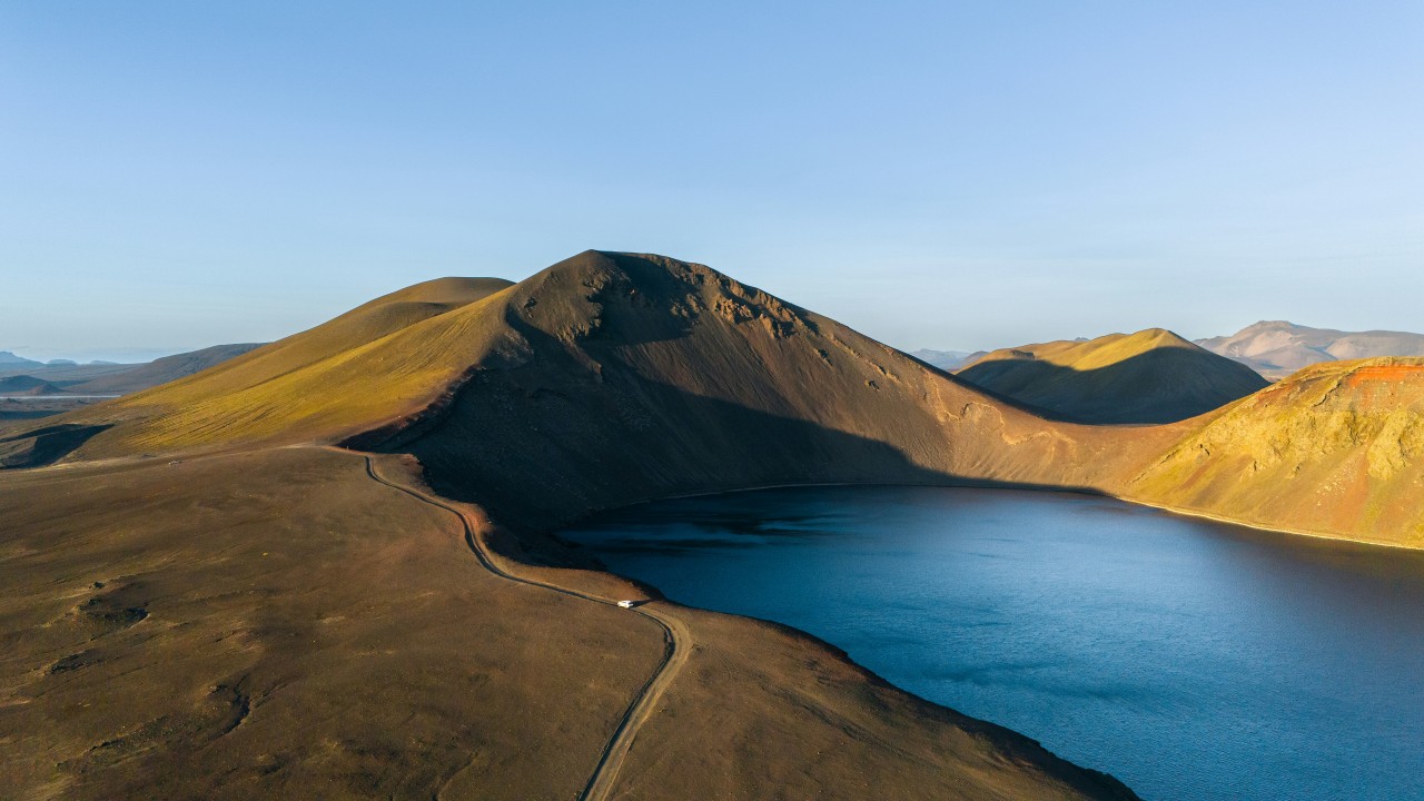 Mountains Clear Sky Lake Road Wallpaper - 1280x720