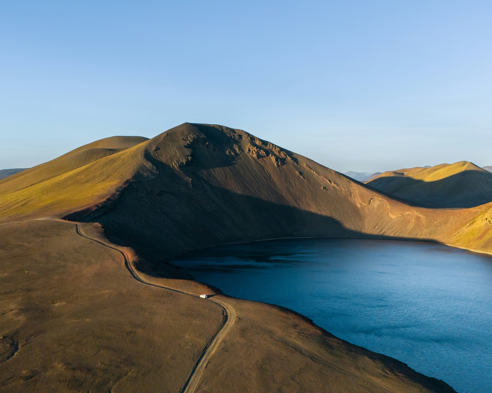 Mountains Clear Sky Lake Road Wallpaper - 1600x1280