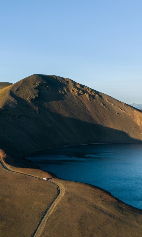 Mountains Clear Sky Lake Road Wallpaper - 480x800