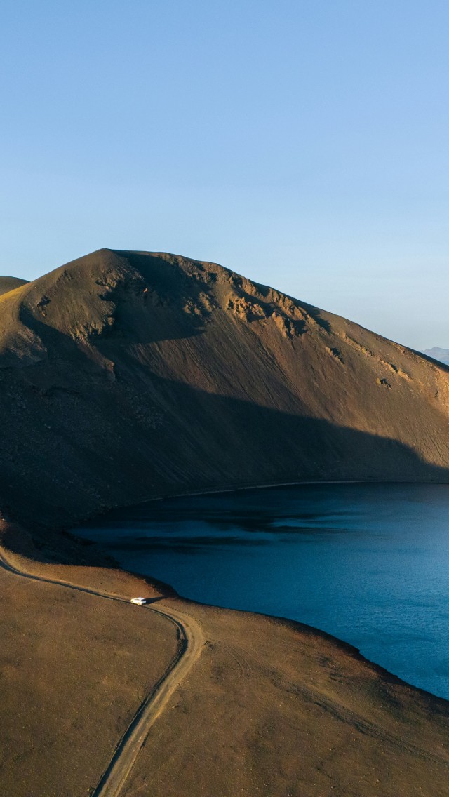 Mountains Clear Sky Lake Road Wallpaper - 640x1136