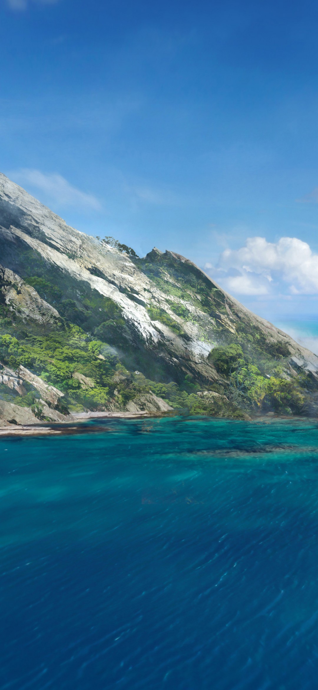 Mountains Island Sea Illustration Wallpaper - 1080x2340