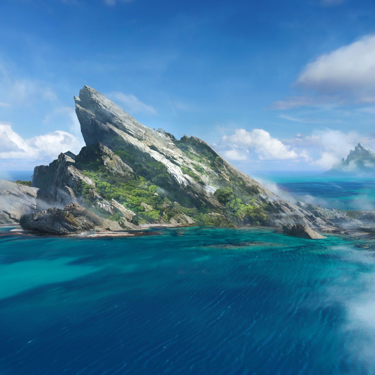 Mountains Island Sea Illustration Wallpaper - 1280x1280