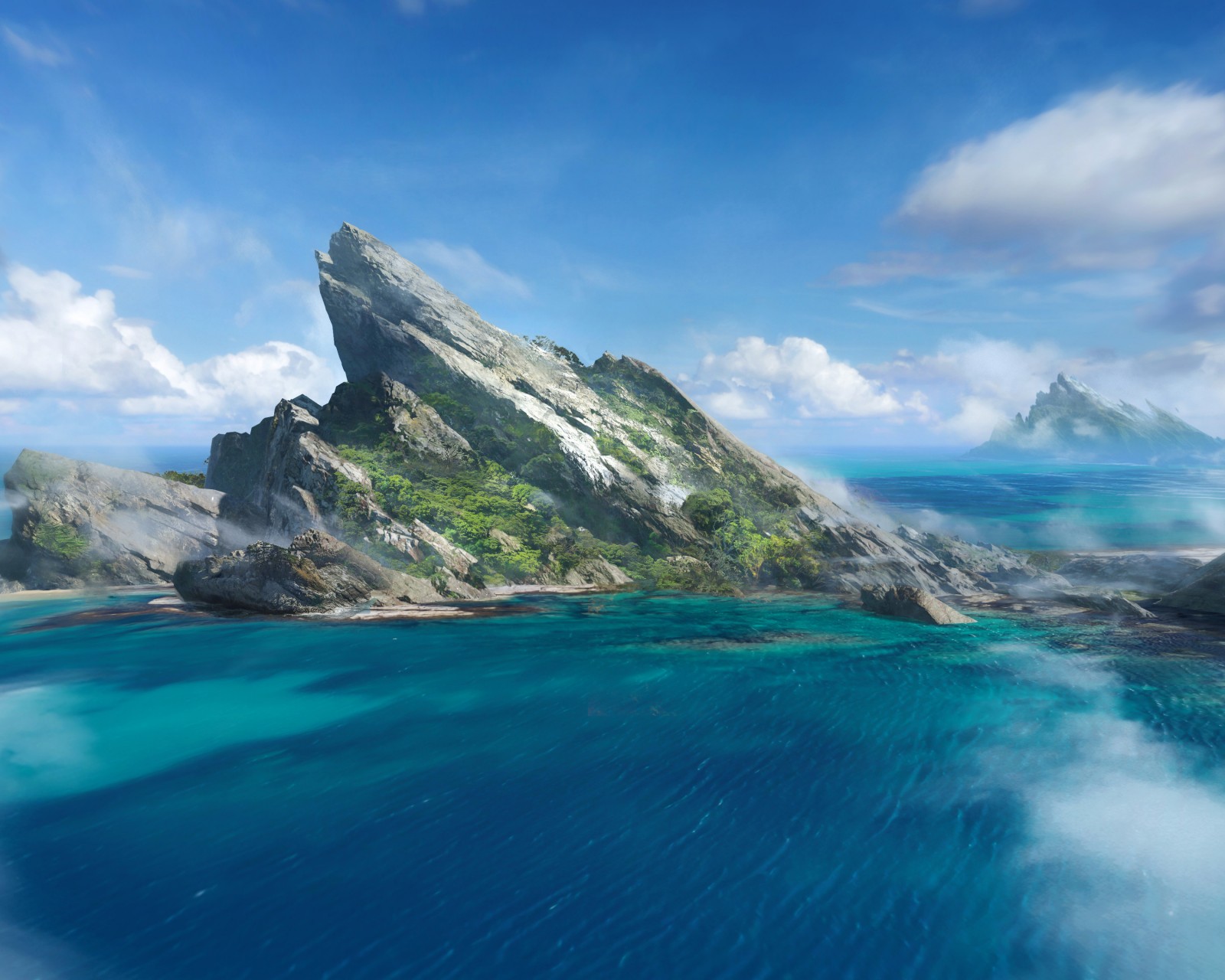 Mountains Island Sea Illustration Wallpaper - 1600x1280