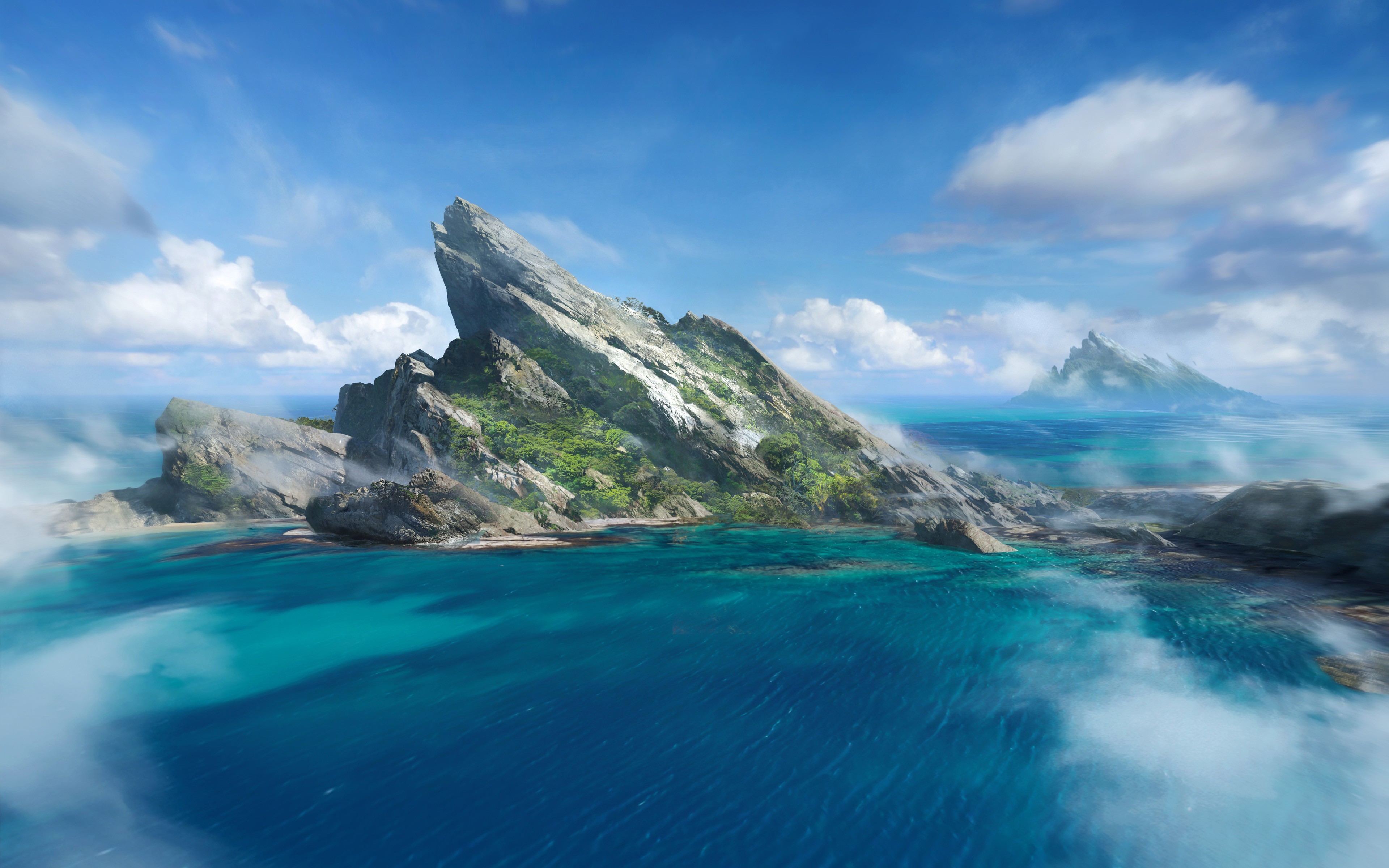 Mountains Island Sea Illustration Wallpaper - 3840x2400