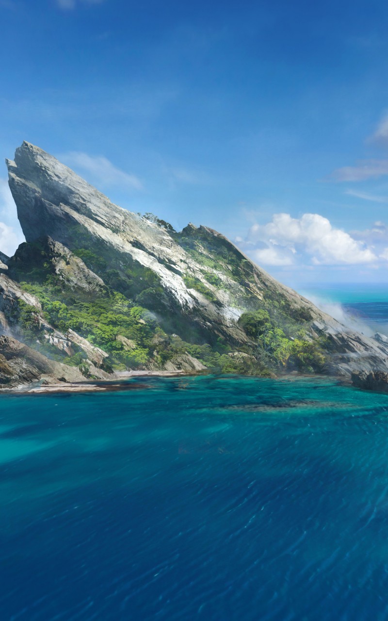 Mountains Island Sea Illustration Wallpaper - 800x1280